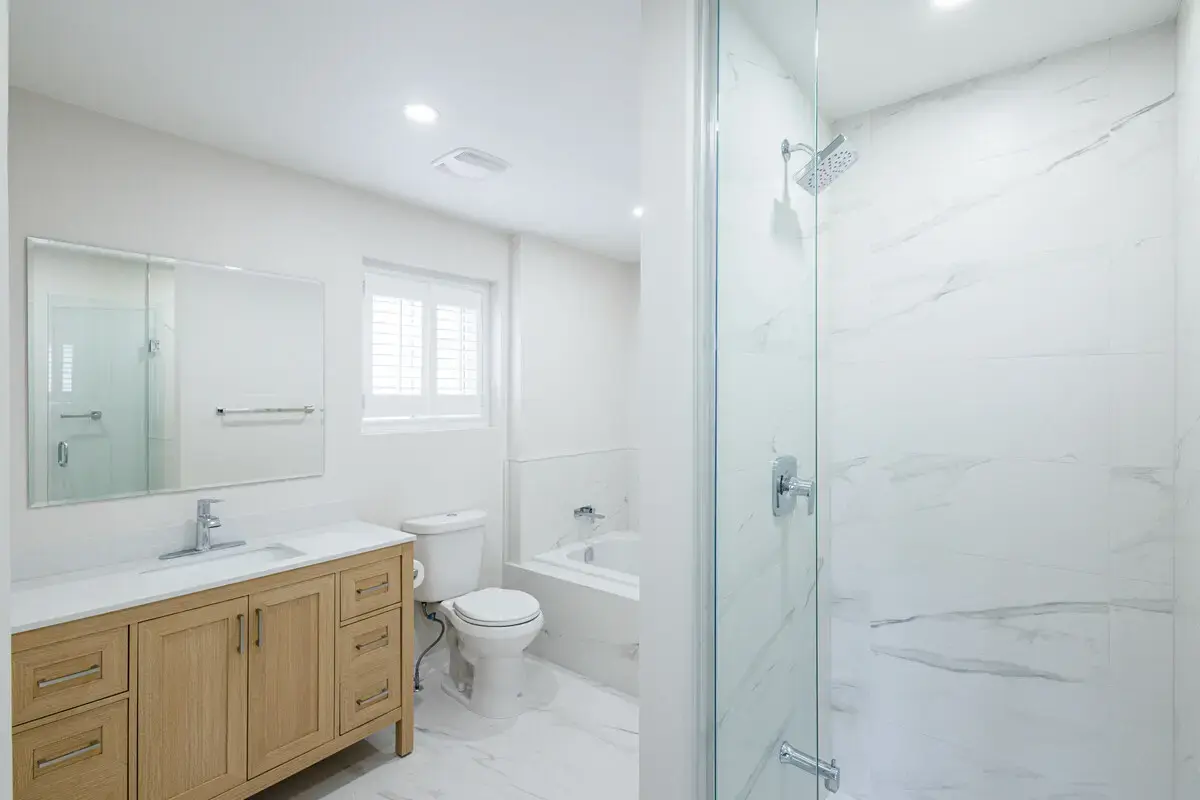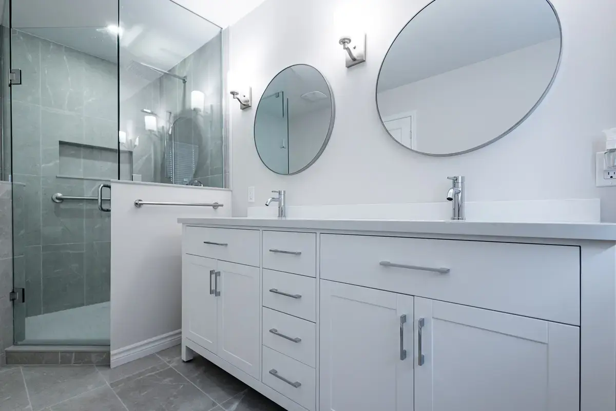At First Round Construction, we create bathrooms that are both functional and refreshing. Serving Los Angeles & Orange County, our team delivers clean designs, modern finishes, and expert craftsmanship.